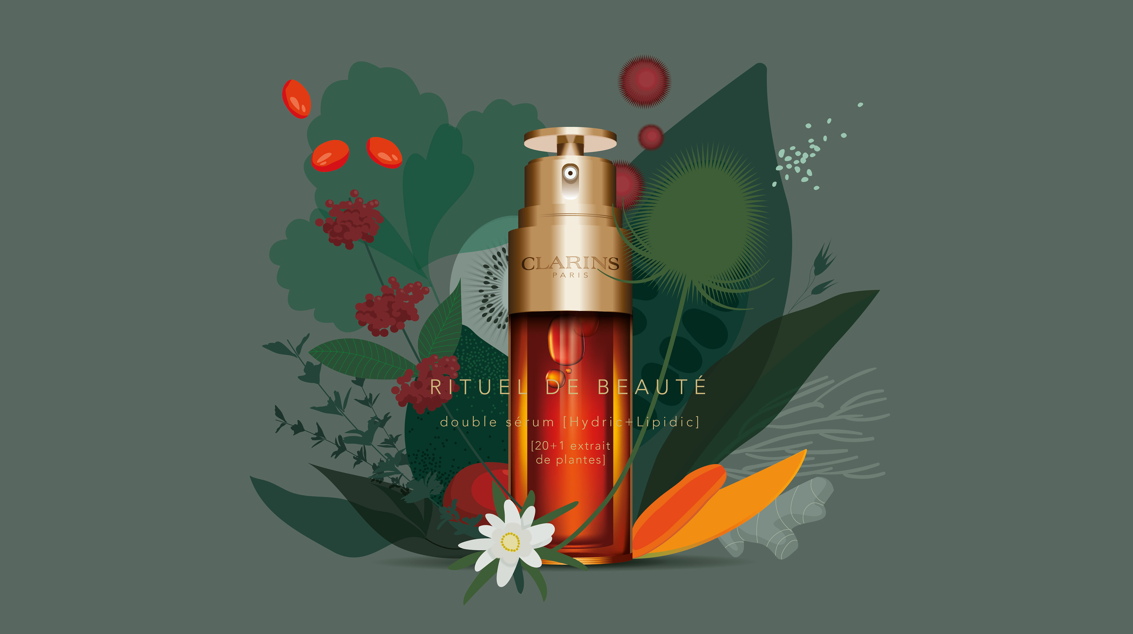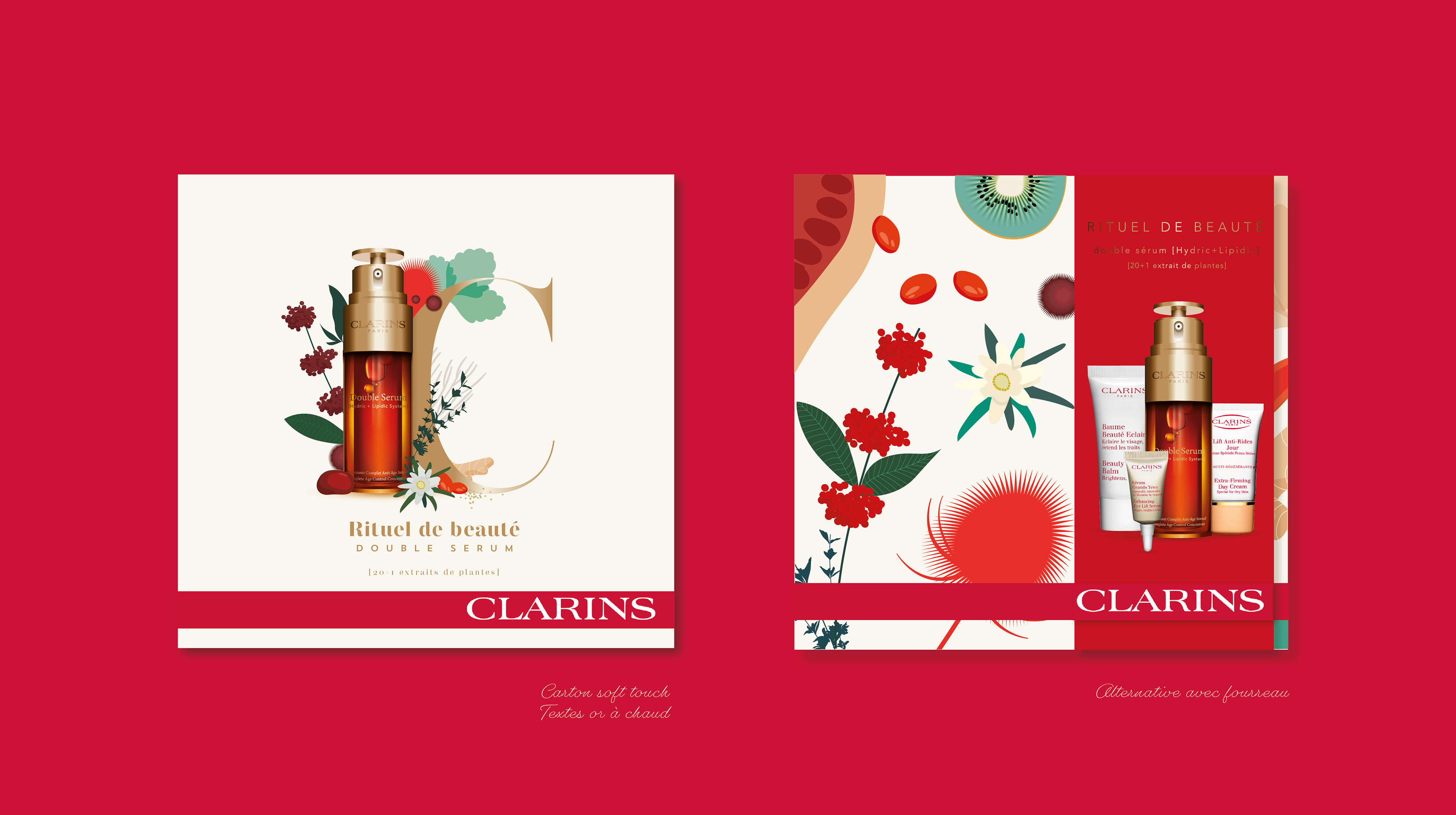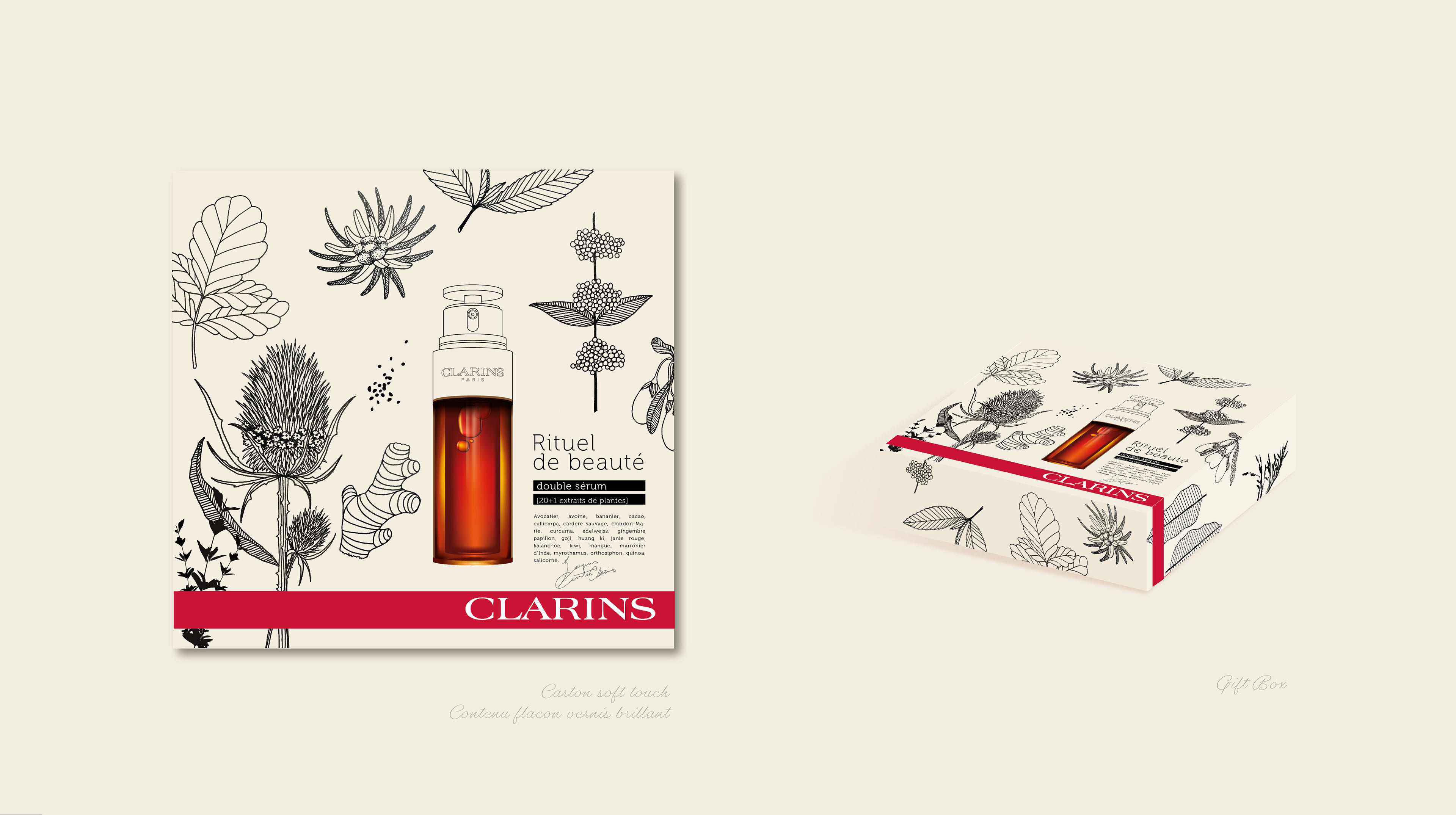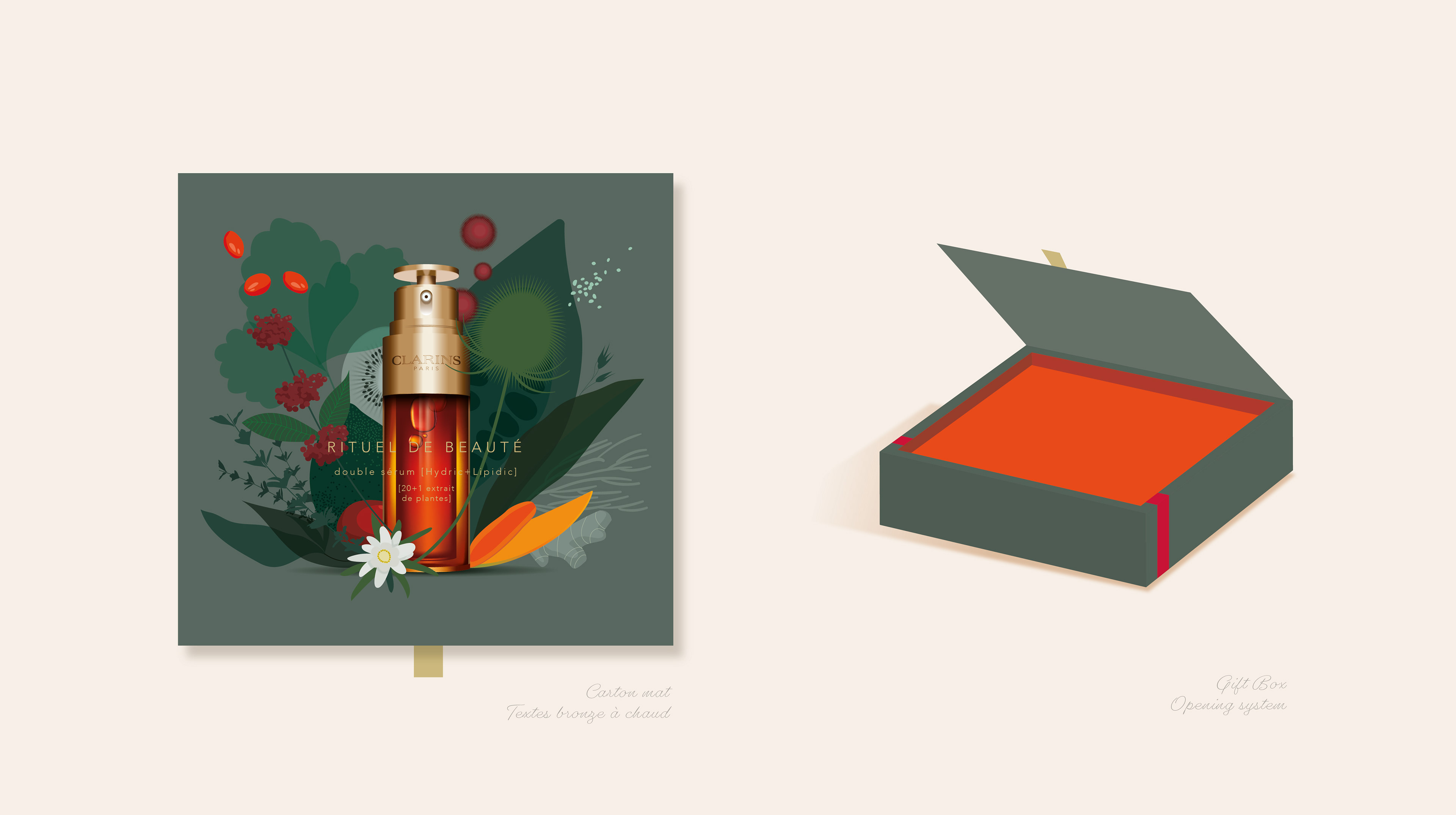 Création d'un coffret cadeau CLARINS sur le thème "at the deep heart of Botanic".