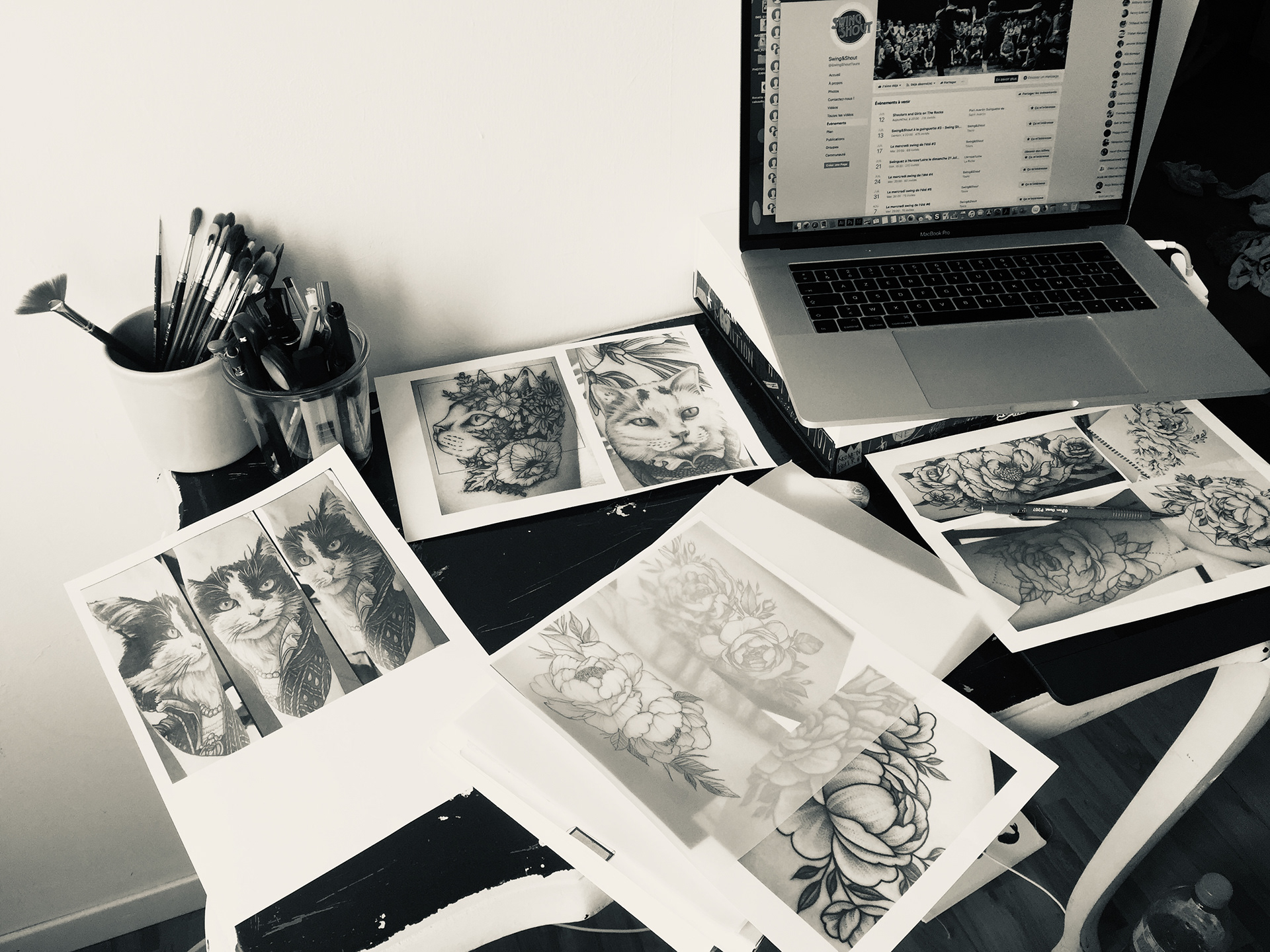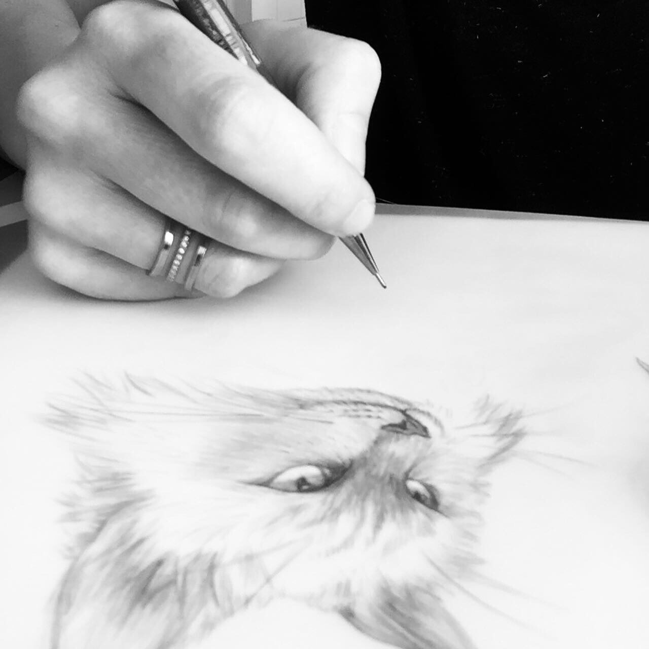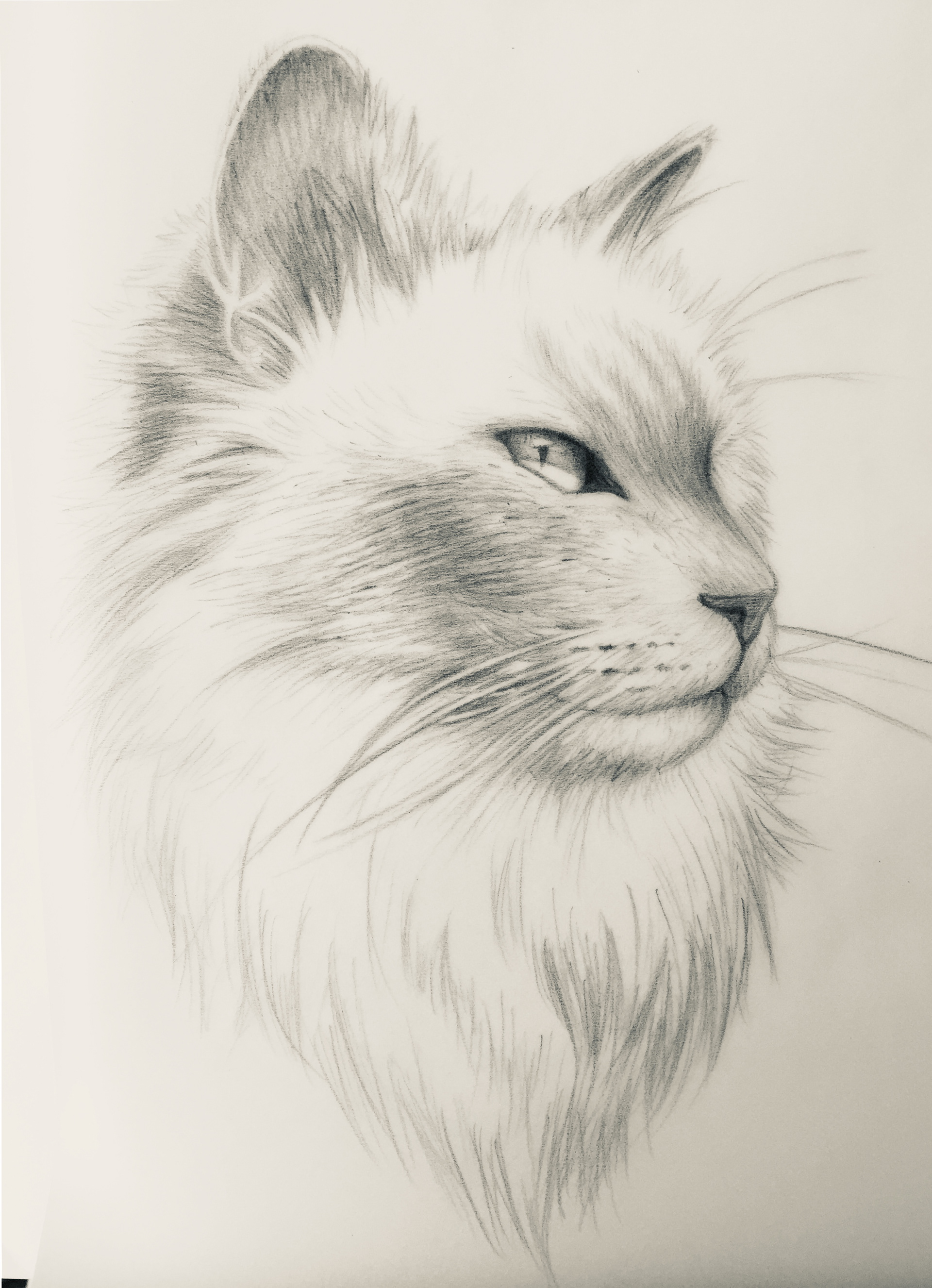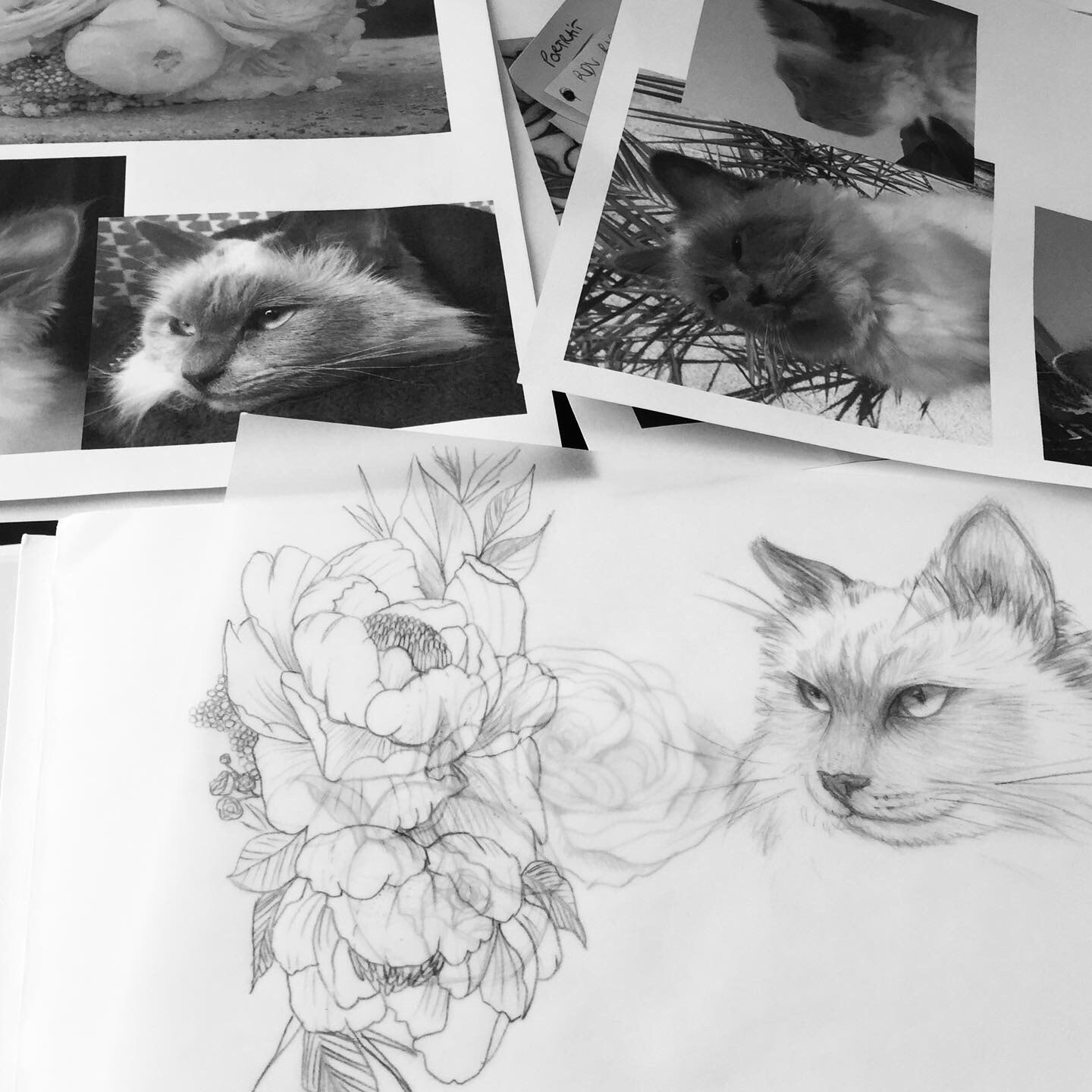 Dessin préparatoire pour un tatouage… portrait d'un sublime sacré de Birmanie nommé Hermione 🖤