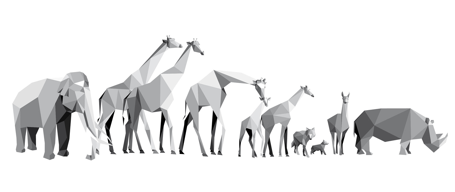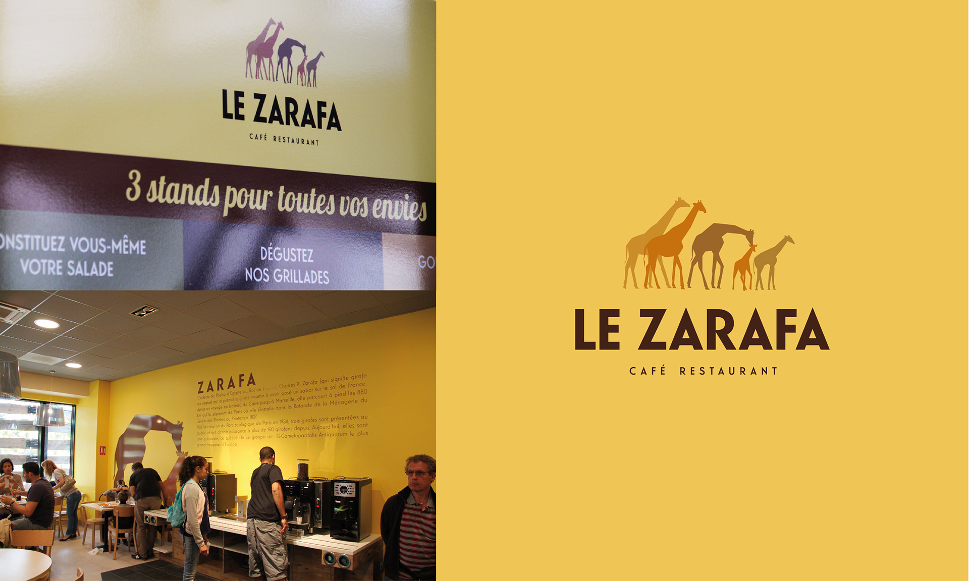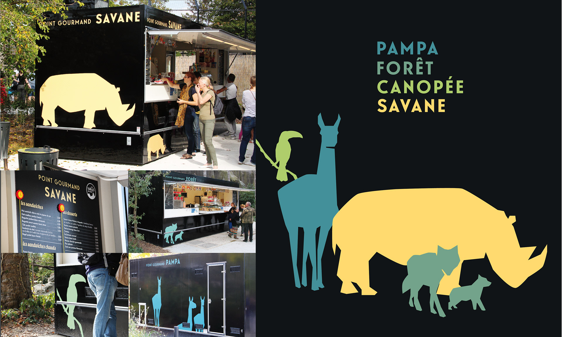 Illustration des animaux pour l'identité des cinq biozones du parc zoologique, des kiosques et des deux restaurants : le Siam et le Zarafa.
